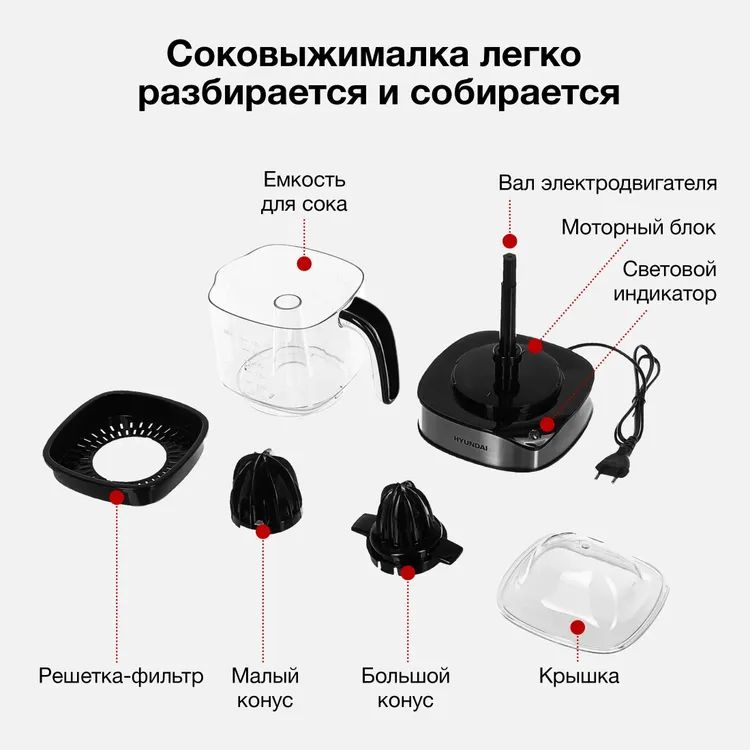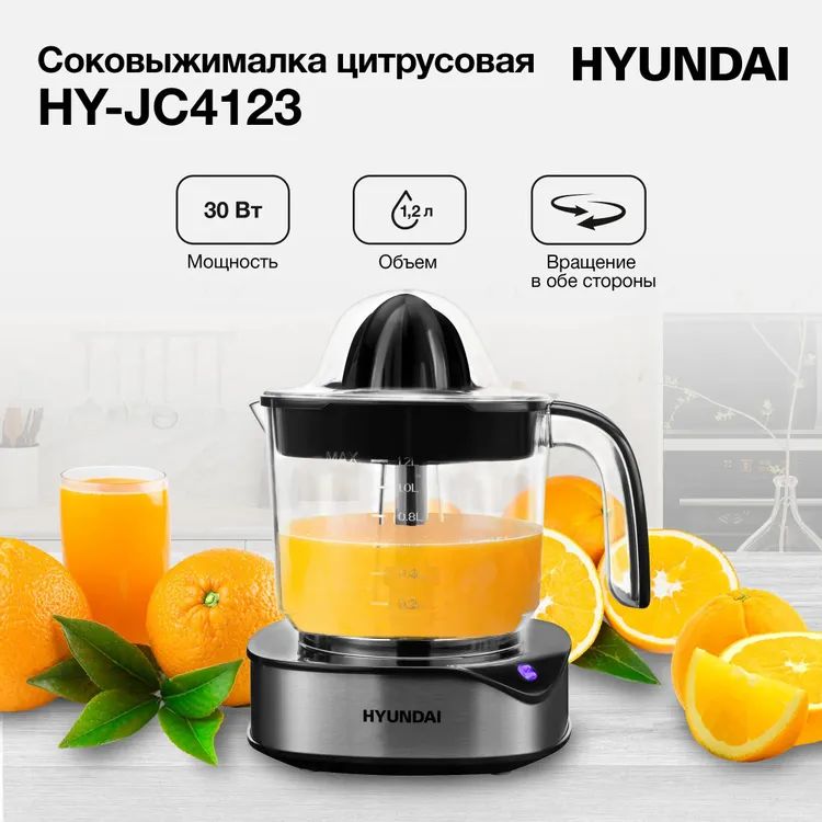 Соковыжималка цитрусовая Hyundai HY-JC4123 30Вт рез.сок.:1200мл. черный/нержавеющая сталь
