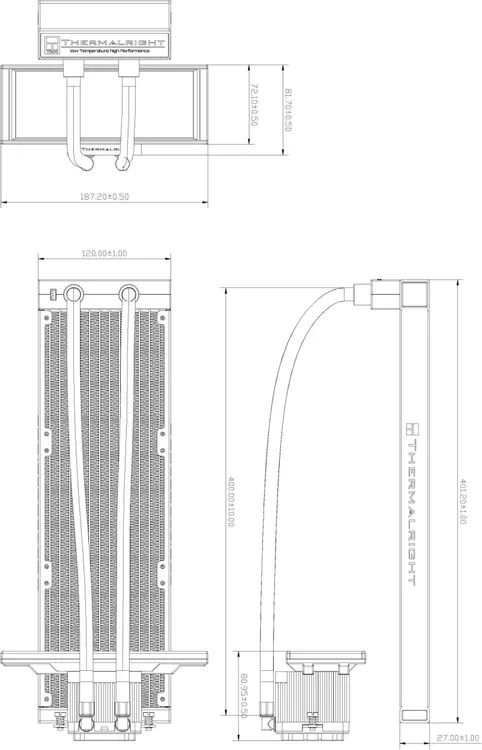 - Размер водоблока 187.2 x 95.8 x 102, Размер радиатора 403 x 27 x 120