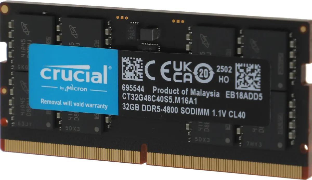 Оперативная память Crucial 32Gb DDR5 4800MHz SO-DIMM (CT32G48C40S5) Ret