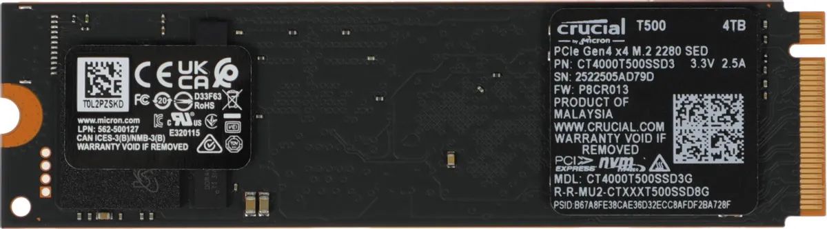 Твердотельный накопитель SSD Crucial T500 4TB PCIe Gen4 NVMe M.2 SSD CT4000T500SSD3