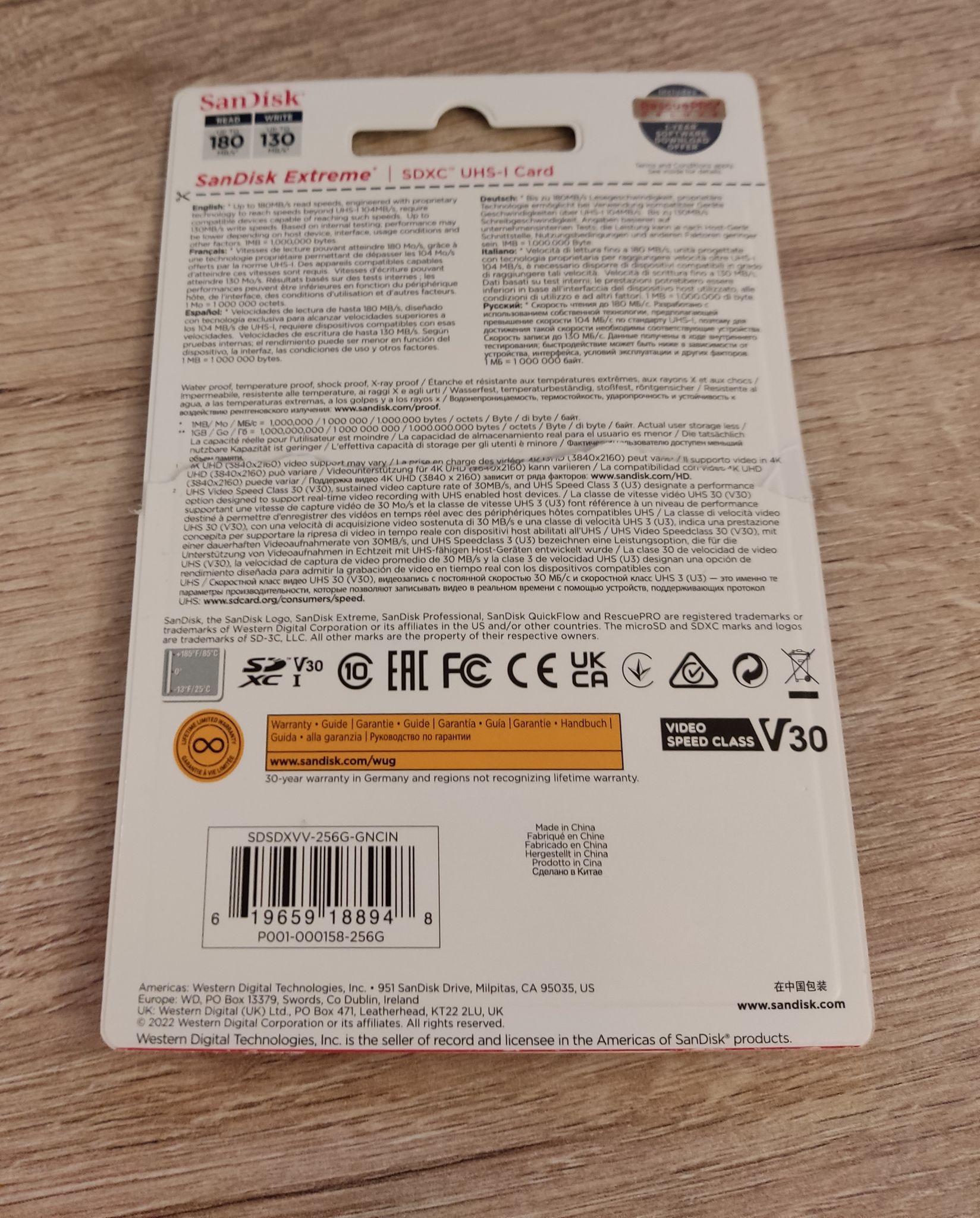 Карта памяти SanDisk Extreme SDXC Class 10 UHS-I U3 V30 256Gb (180/130 MB/s)