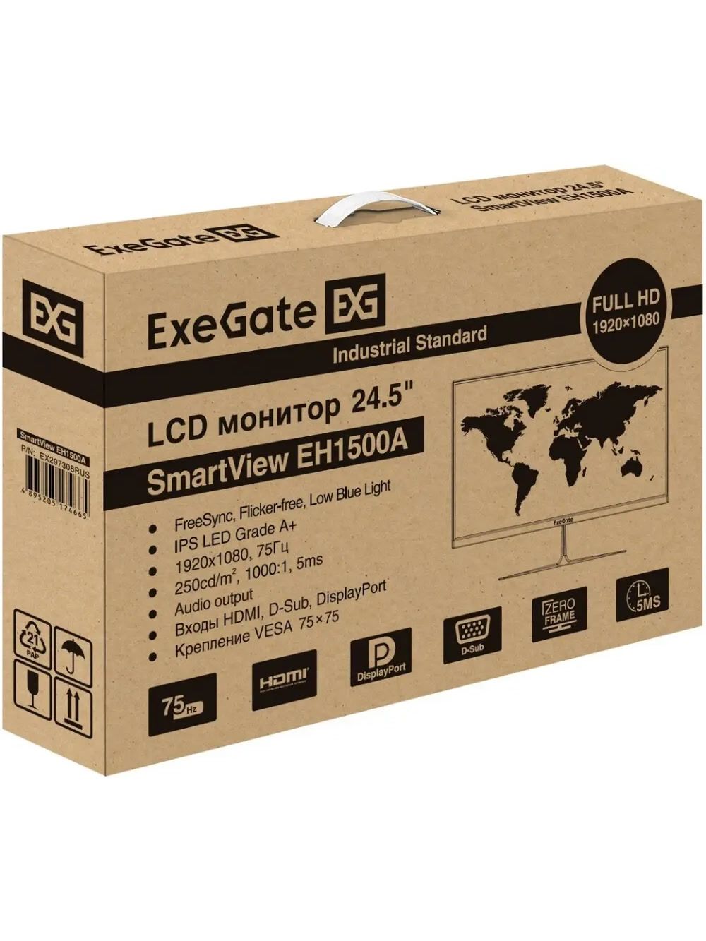Монитор ExeGate 24.5" EH1500A SmartView черный {IPS 1920x1080 75Hz 5ms 250cd 1000:1 178/178 D-Sub HDMI DisplayPort} [EX297308RUS]