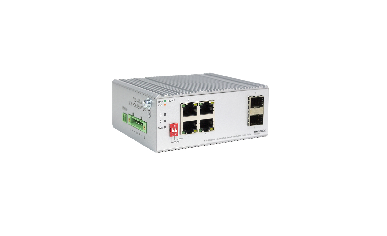 Промышленный неуправляемый PoE-коммутатор ORIGO OI2206P/120W, 4x1000Base-T PoE+, 2x1000Base-X SFP, PoE-бюджет 120 Вт