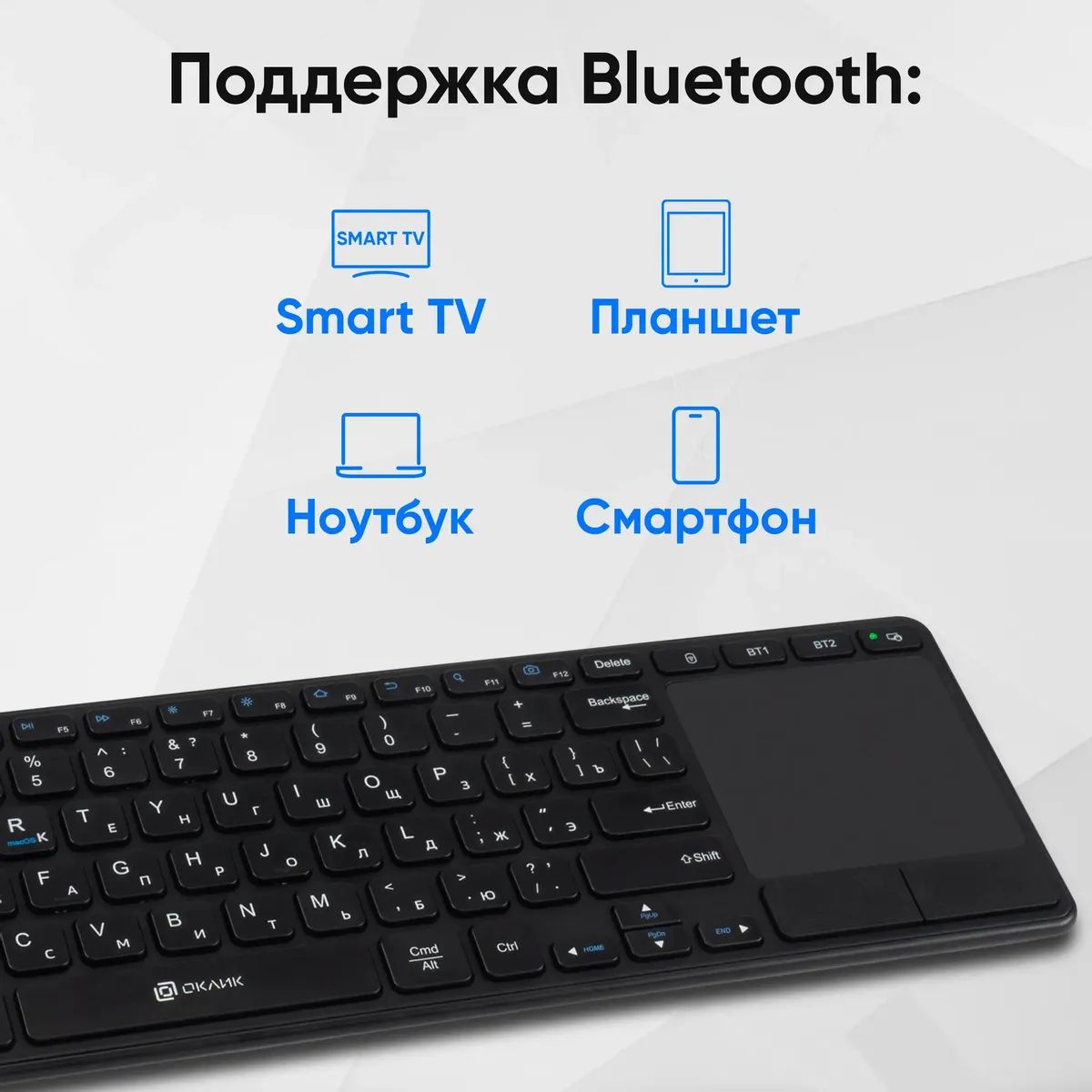Клавиатура Оклик K614W черный USB беспроводная slim Multimedia Touch (1979327)