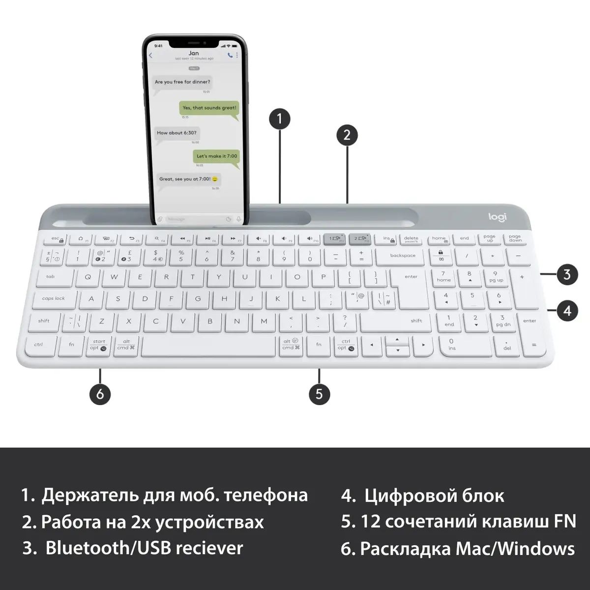 Клавиатура Logitech K580 белый/серебристый USB беспроводная BT/Radio slim Multimedia (920-009209)