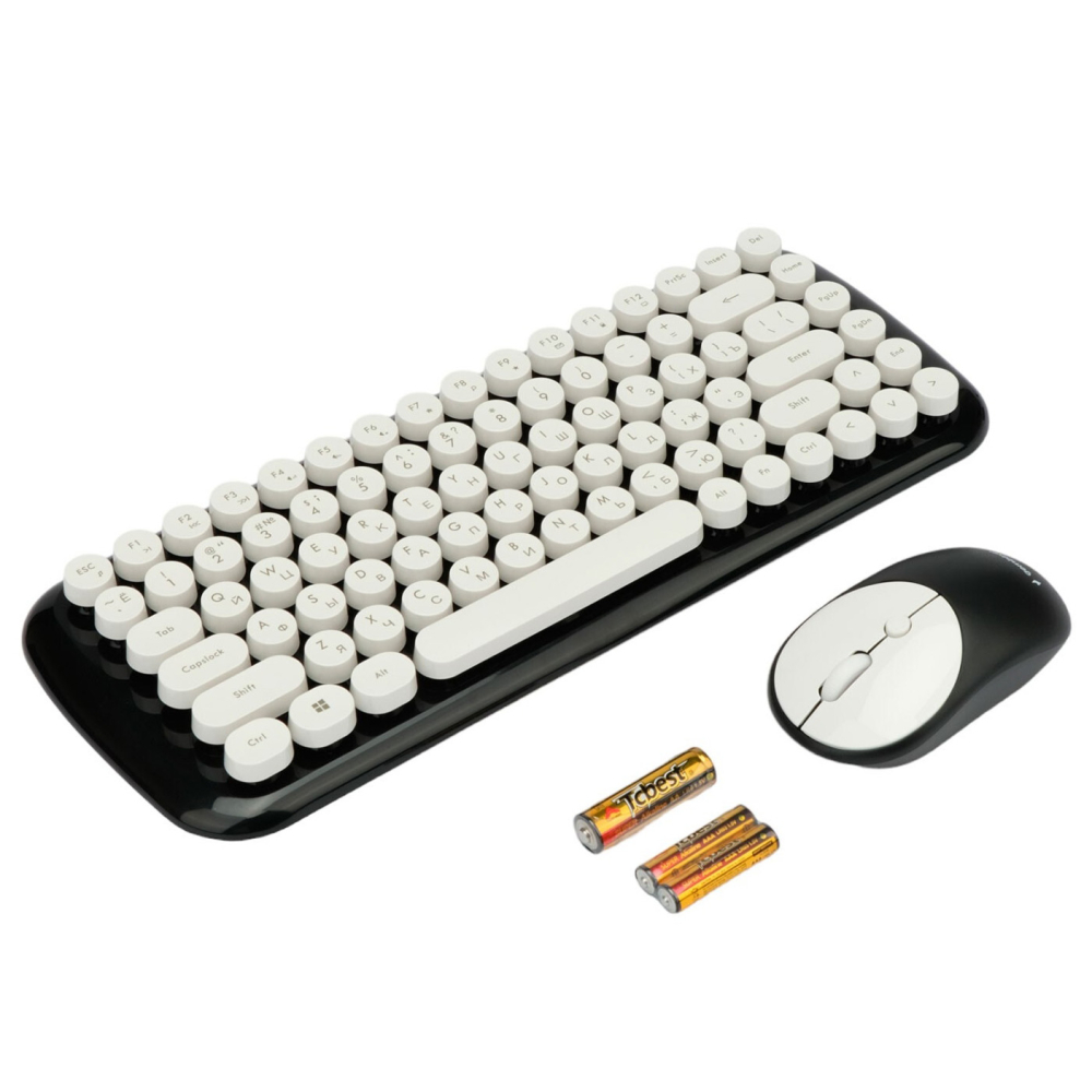 Клавиатура, мышь, USB ресивер, батарейки 2xAAA, батарейка 1xAA, документация