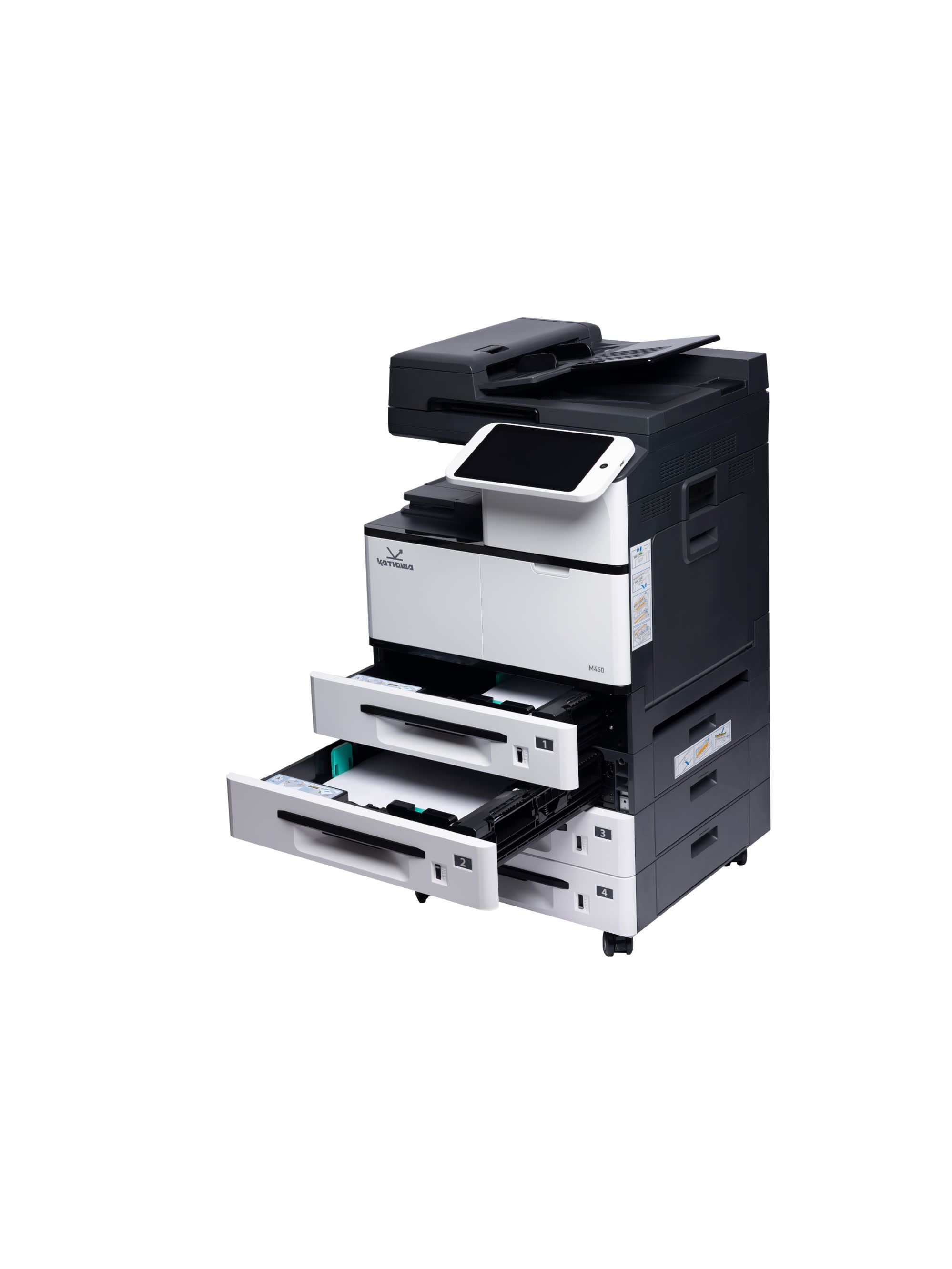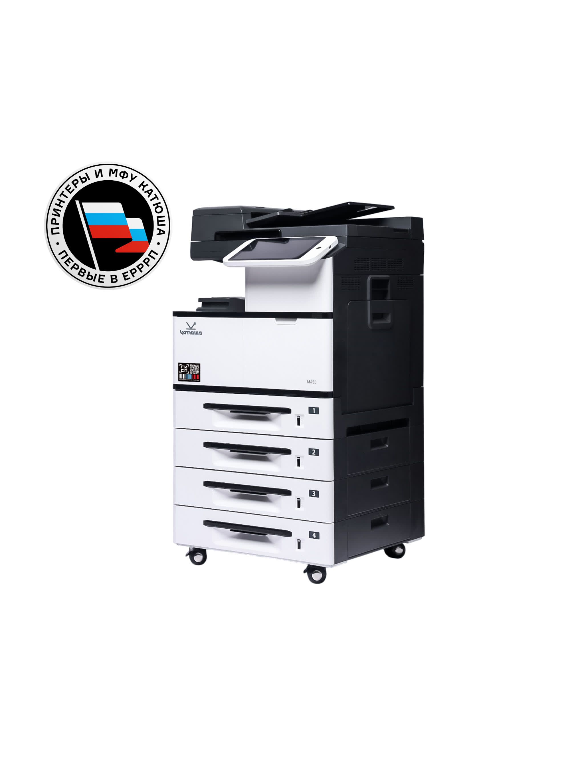 МФУ Катюша M450 принтер/копир/сканер, А3. 50 стр/мин Ч/Б А4, 1200 dpi. Сканер цвет А4-А3 120 стр/мин. 800 МГц, 4 Гб, USB, Wi-Fi. PS3, ADF 90 л. Тонер 10 000 отп., пр-во РФ, 3 года гар. МПТ